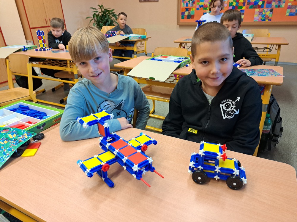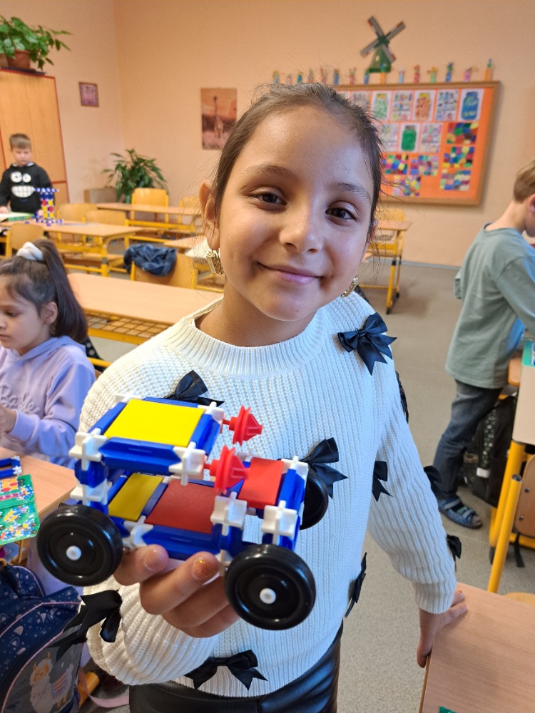 V hodinách výtvarně praktické výchovy jsme stavěli jednoduché i složitější konstrukce se stavebnicí SEVA. Někteří používali jako inspiraci obrázky z návodu a jiní tvořili podle vlastní fantazie. Krásné výtvory měli nejen kluci, ale i děvčata.