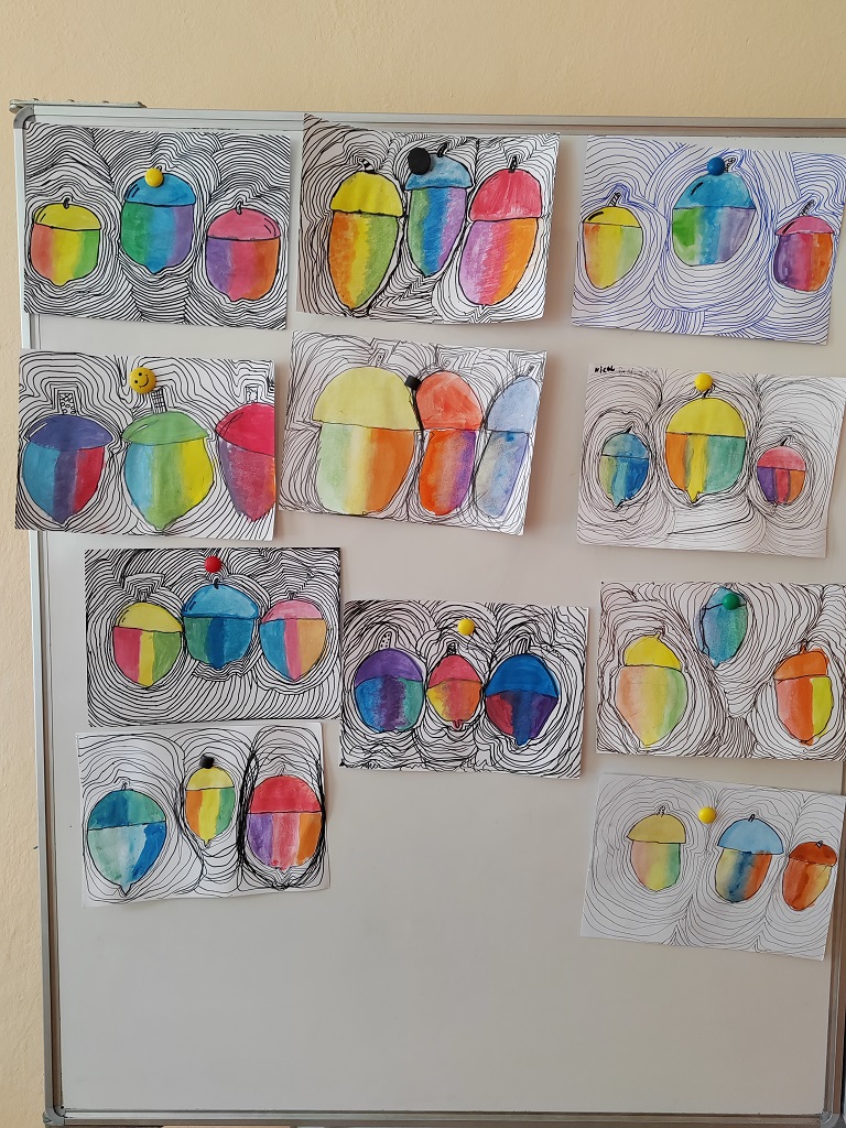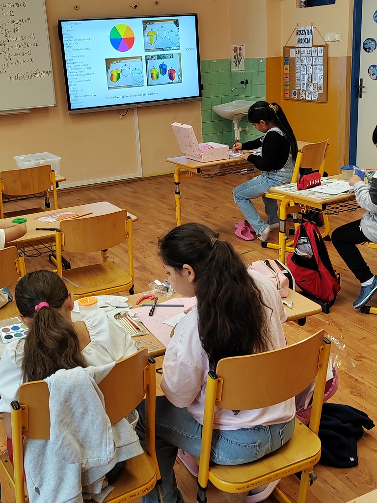 V hodinách výtvarně praktické výchovy jsme malovali podzimní plody a učili se rozlišovat studené a teplé barvy. Obrázky se všem velmi povedly.