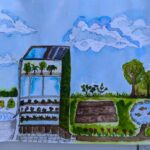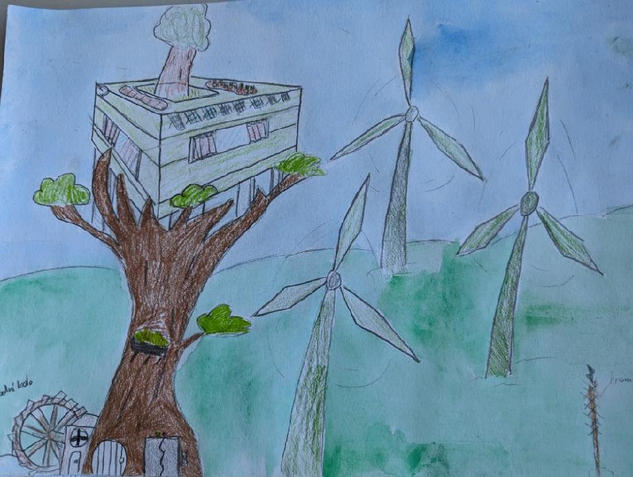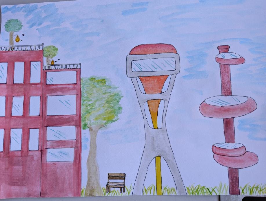 “ Jak bude vypadat město, kde lidé žijí v souladu s přírodou? Město, které je nejen moderní s různými technologiemi, ale i udržitelné, zdravé a přívětivé pro všechny = lidi, zvířata i rostliny? Takto je vidí naši žáci.