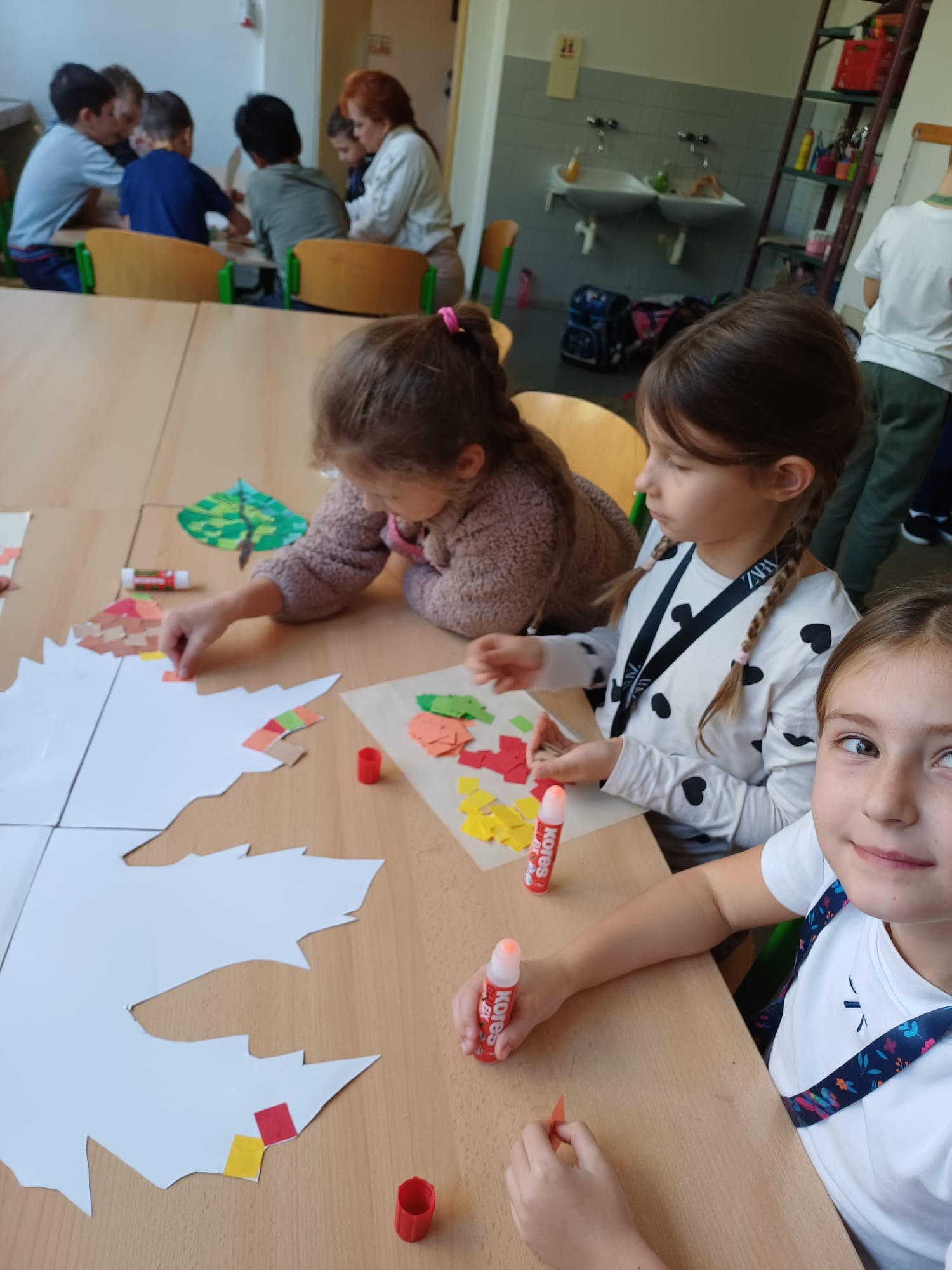 Martin na bílém koni přijel i do 4. oddělení a děti si již začaly chystat vánoční výzdobu třídy. V předchozím týdnu ve 4. oddělení proběhlo skupinové podzimní tvoření – LIST – jeden obří list tvořila děvčata a druhý tvořili kluci.