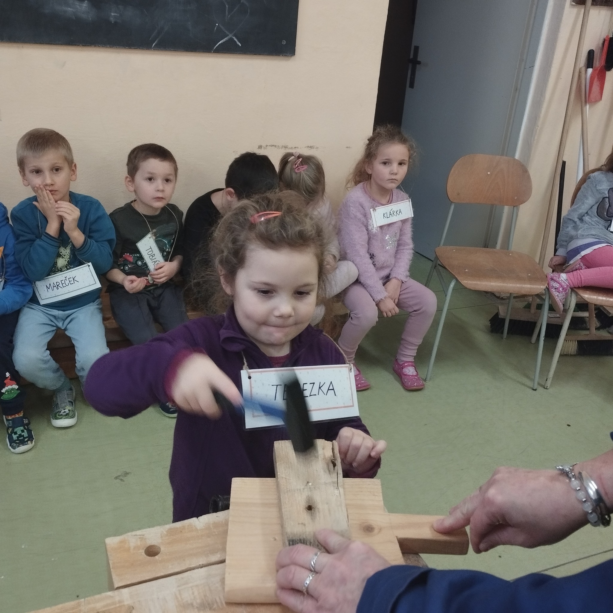 Děti ze školičky pro předškoláky se tentokrát podívaly do školní dílny, kde si vyrobily andílka.