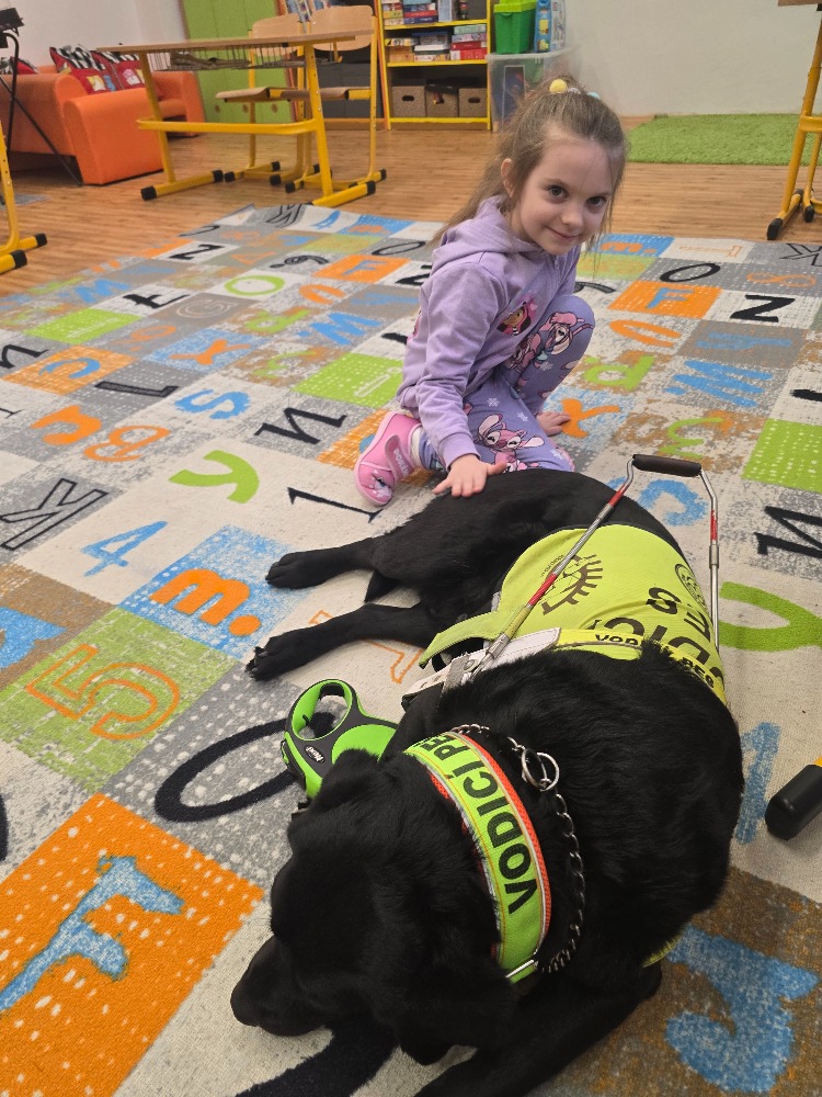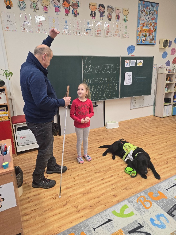 Do naší třídy zavítala návštěva vodicího psa se svým majitelem. Děti se dozvěděly, jak důležitou roli mají vodicí psi v životě lidí se zrakovým postižením. Pomáhají jim bezpečně se pohybovat venku, přecházet silnici nebo najít správnou cestu.