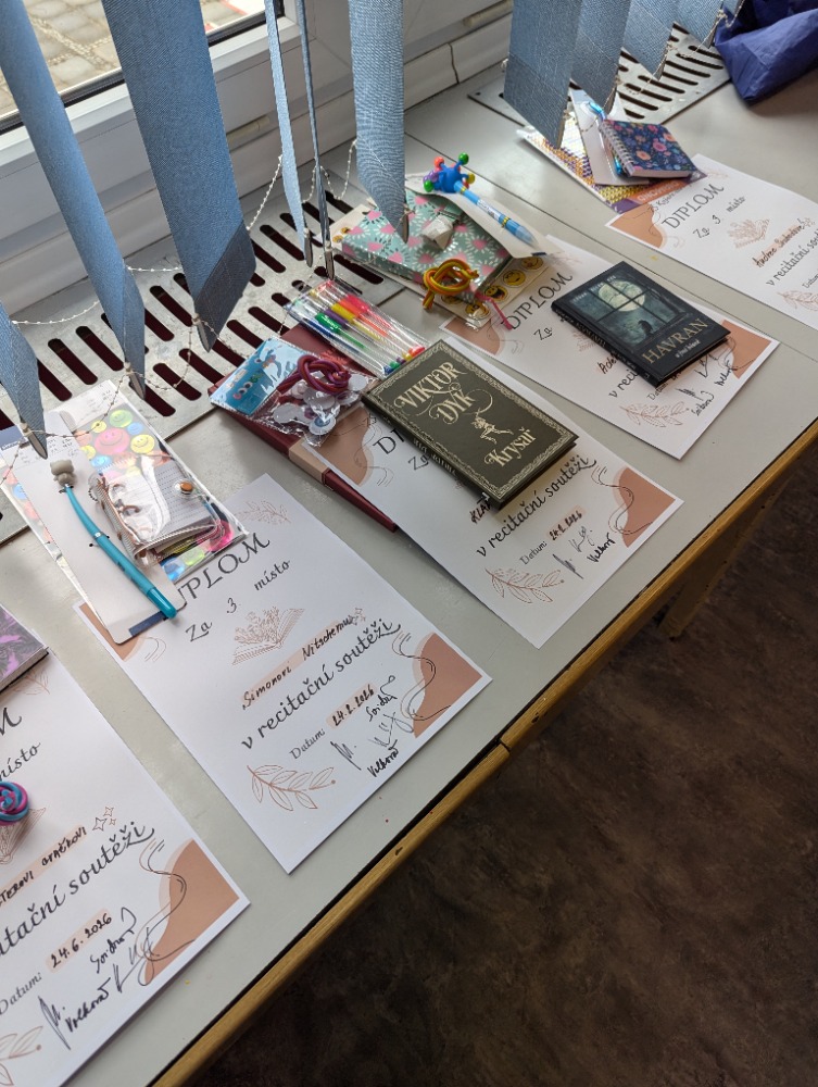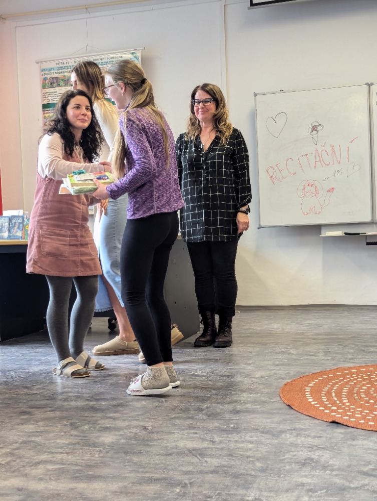 V úterý 24. února se konalo školní kolo recitační soutěže pro 2. stupeň v naší krásné školní knihovně. Účastníků byl hojný počet, každá třída měla pár svých zástupců, celkem se zúčastnilo 21 žáků. Někteří podali opravdu procítěné až téměř herecké výkony, přednes byl opravdu dokonalý. V I. kategorii, v souboji mezi 6. a 7. třídami, zvítězila Klára Zimčíková (7.A), 2. místo patří Matěji Valtrovi Cvačkovi (6.B) a 3. místo Simonu Nitschemu (6.A). V II. kategorii všechny žáky 8. a 9. tříd porazila Klára Hlucháňová (8.A), na 2. místě skončila Adéla Hranická (9.B) a 3. místo dobyla Andrea Svobodová (9.A). Zvláštní cenu poroty dostal Kyryl Popov jako jediný ne rodilý mluvčí češtiny, který zvládl bravurně cizí jazyk! Všem oceněným gratulujeme! A doufáme, že příští rok kromě ostřílených borců uvidíme i nové tváře!
