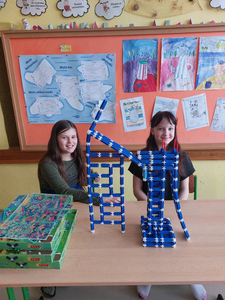 V rámci hodin výtvarně praktické výchovy jsme se vrhli na stavby z dřevěných komponentů a stavebnice Sewy a moc nás to bavilo.