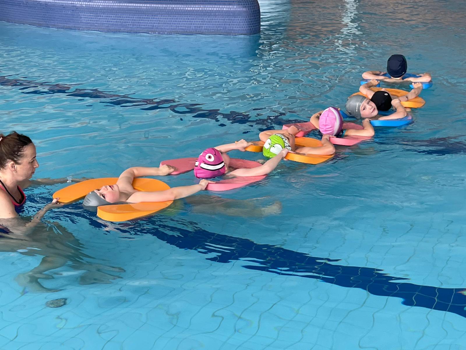 Dnes jsme s dětmi zažili naše první plavání. Pro některé to bylo úplně nové dobrodružství, pro jiné příležitost ukázat, co už ve vodě zvládnou. Děti se postupně seznamovaly s prostředím bazénu, učily se nebát vody, foukat do ní a zkoušely první jednoduché pohyby. Nechyběla ani spousta her, smíchu a radosti.